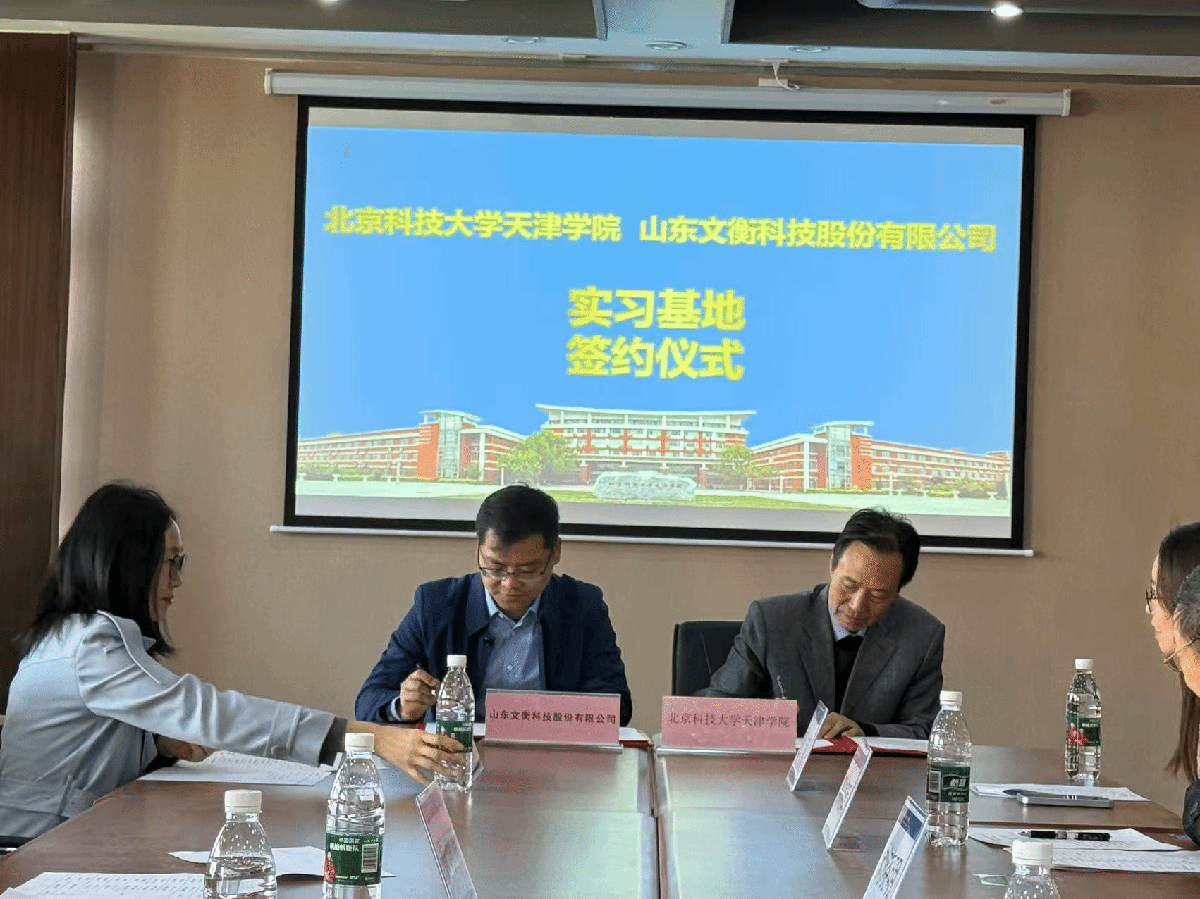 随后,双方正式签署了实习基地建设协议,法律系向山东文衡科技股份有限公司授牌“教学实践基地”,夏傲福董事长受聘为beat365兼职教授,窦磊副总经理、刘少英总监等七名实务专家受聘为beat365知识产权专业实践导师,山东文衡科技股份有限公司向beat365捐赠价值十万元的文衡万象情报数据库使用权益。