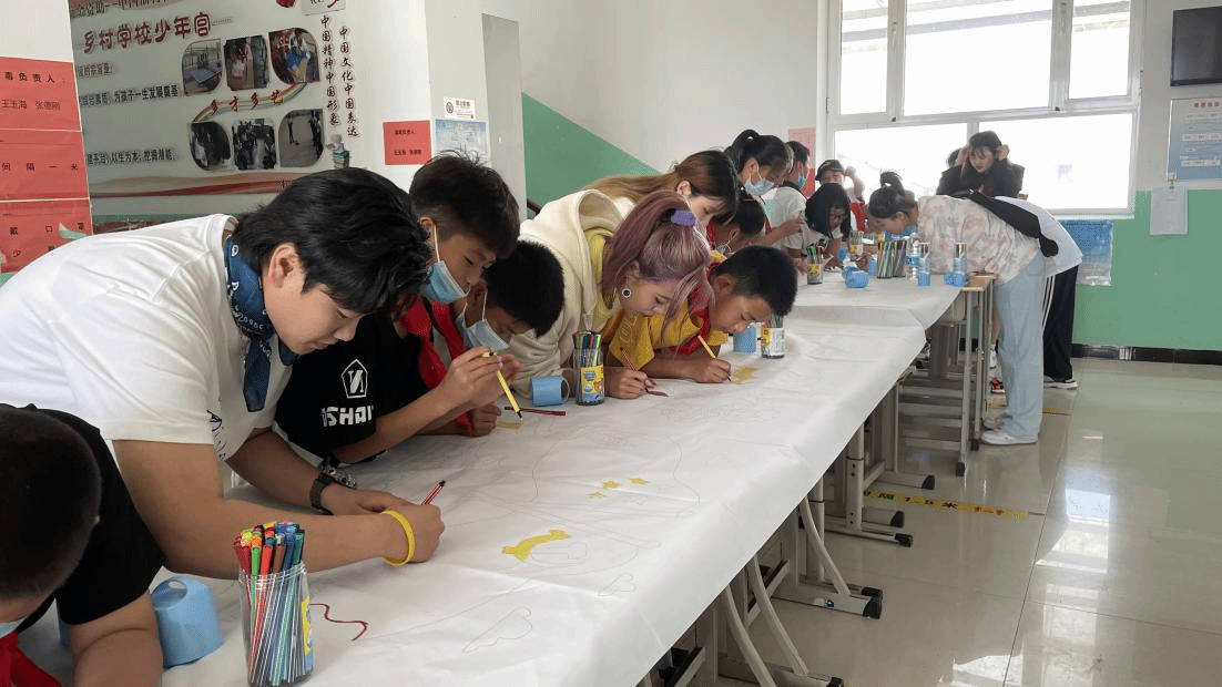 艺术设计系学生与南里自沽小学共同完成建党百年主题画卷