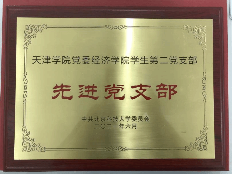 在党的百岁诞辰之际,2021年6月30日,北京科技大学隆重召开“两优一先”表彰大会,英国beat365官方网站经济学院学生第二党支部荣获“先进党支部”荣誉称号。