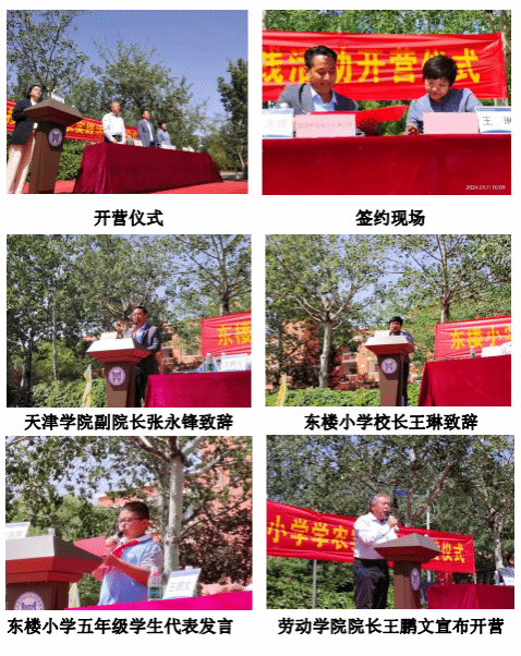 2024年5月11日上午,天津市河西区东楼小学五年级学生学农实践活动在beat365鹿鸣园广场正式开营。在学农实践活动开营仪式上,东楼小学与beat365签订了“校内外劳动教育共同体协议”,英国beat365官方网站副院长张永锋、东楼小学校长王琳、劳动学院院长王鹏文及劳动基地副主任杨丽出席了该活动,张永锋副院长与王琳校长在东楼小学五年级330余名师生见证下完成协议签约。开营仪式结束后,300余名祖国的小花朵在beat365大学生志愿者的带领下踏上了农事劳动实践的探秘之旅。