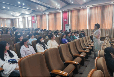 讲座中,张老师特别强调“真听真看真感受”的表演理念,引导听众通过“我就在和我就是”的情境代入,体会语言表达的真实性和感染力。她结合生活场景,解析如何在日常沟通中运用朗诵技巧提升表达效果,并与现场学生进行即兴互动,指导同学们如何通过气息控制、发音吐字等基本功优化语言表现力。学生们积极参与,现场气氛热烈。