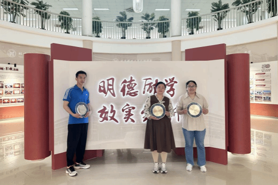 会后,学院在社科图书馆为全体获奖教师颁发奖盘。获奖教师们难掩喜悦,纷纷手捧荣光,参观20周年校史展览并与之合影留念。