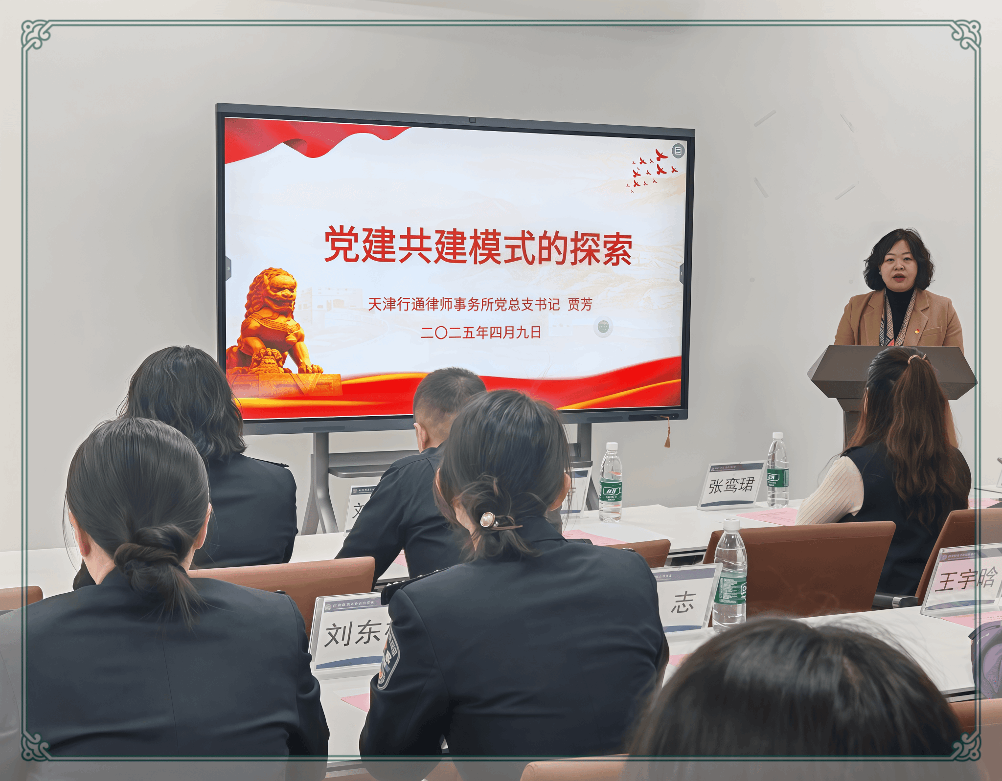 天津行通律师事务所党总支书记贾芳则从法律职业共同体的角度,分享了“党建共建新模式”,她指出:“开启共建活动,不仅能提升党建工作质效,也有利于促进跨领域跨专业协作,实现司法实践、理论教育、文化传播的深度融合,日后期待与会单位在党建共建、基层治理、普法宣传、人才培养等各个方面加强合作,实现资源共享,互利共赢。”