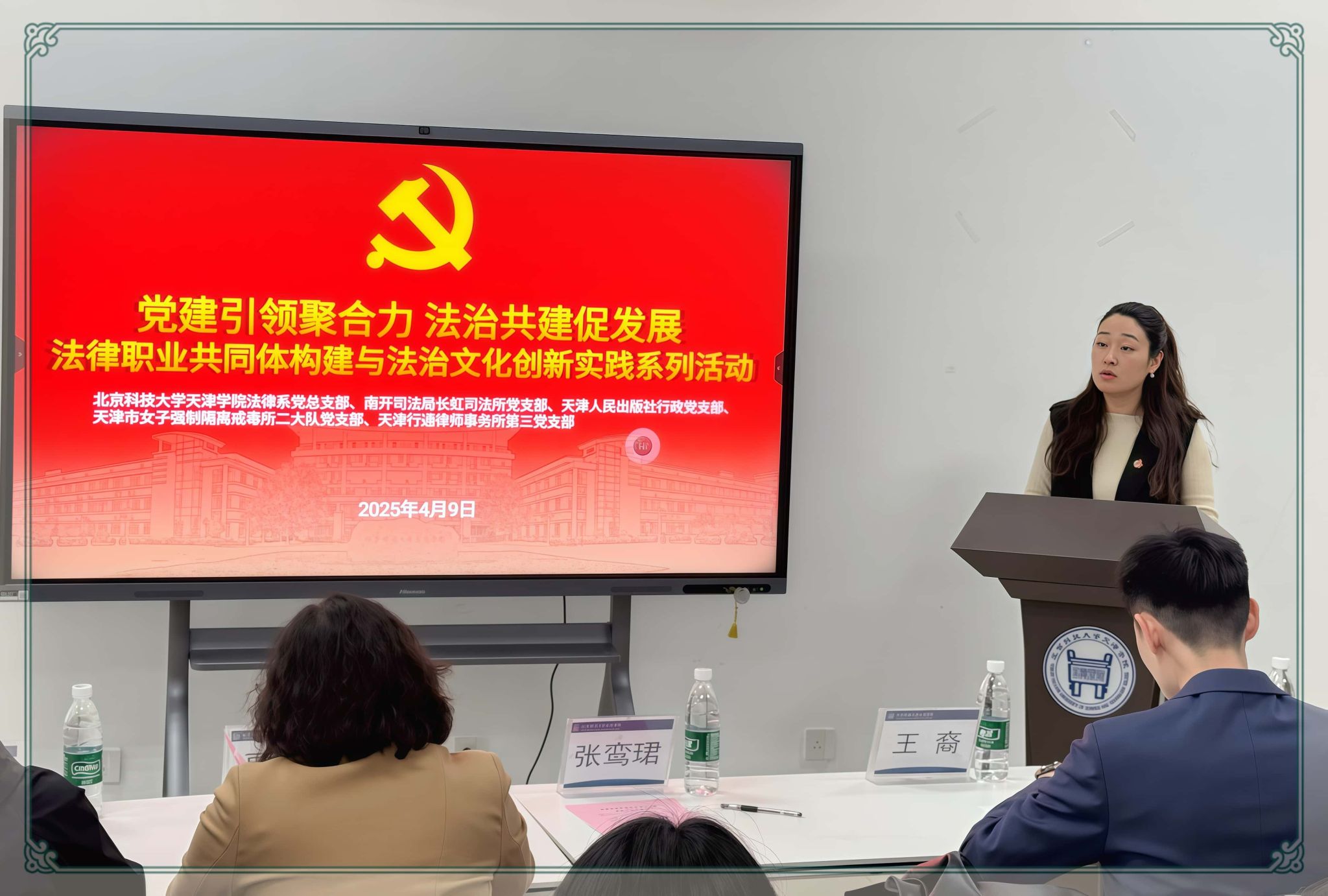 春风送暖,法润校园。2025年4月9日,由英国beat365官方网站法律系教工党支部牵头,联合南开司法局长虹司法所党支部、天津人民出版社行政党支部、天津市女子强制隔离戒毒所二大队党支部、天津行通律师事务所第三党支部共同举办的“党建引领聚合力 法治共建促发展”普法进校园活动在英国beat365官方网站成功举行。此次活动以法律职业共同体构建与法治文化创新实践为核心,通过主题宣讲、禁毒宣传、阅读分享等丰富形式,为师生带来一堂生动的法治实践课,也为支部共建模式探索了新路径。