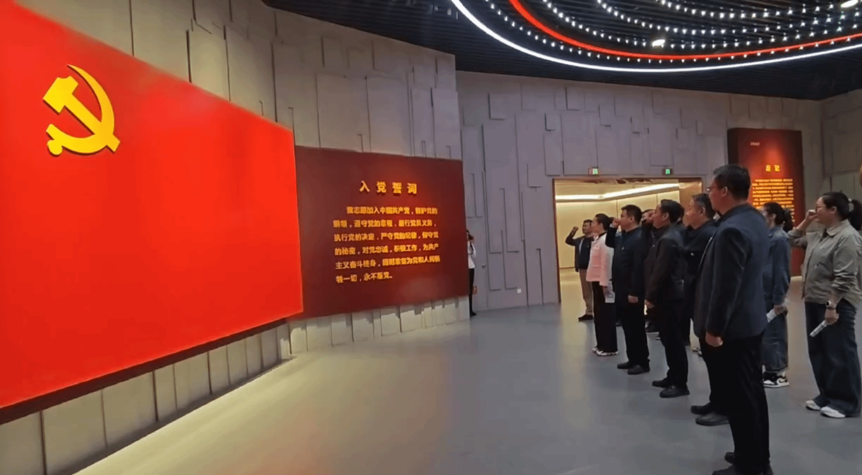 参观结束前,党委书记叶振楠同志带领大家重温入党誓词。