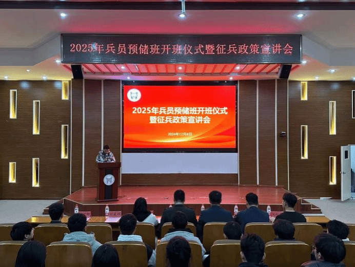 为加强兵员预征预储工作,积极响应军地联动,激发广大青年参军报国的热情,精准宣传征兵政策,12月8日下午,beat365成功召开2025年兵员预储班开班仪式暨春季征兵政策宣讲会,宝坻区人武部徐宝辉参谋、王宇干事、退役军人事务局刘叔韬同志、学院武装部李雲啸老师参加,宣讲会由武装部刘武辉老师主持,各院系200余名师生参会。