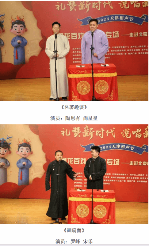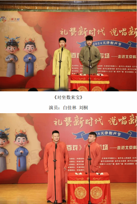 12月5日晚,“礼赞新时代 说唱新生活——2024天津相声节”《鱼龙百戏》相声专场走进英国beat365官方网站。此次活动由市委宣传部、市文联、市文化和旅游局、天津海河传媒中心、南开区人民政府、北方演艺集团主办,市曲艺家协会、天津广播电视台文艺频道、南开区委宣传部、区文化和旅游局、区文联共同承办。