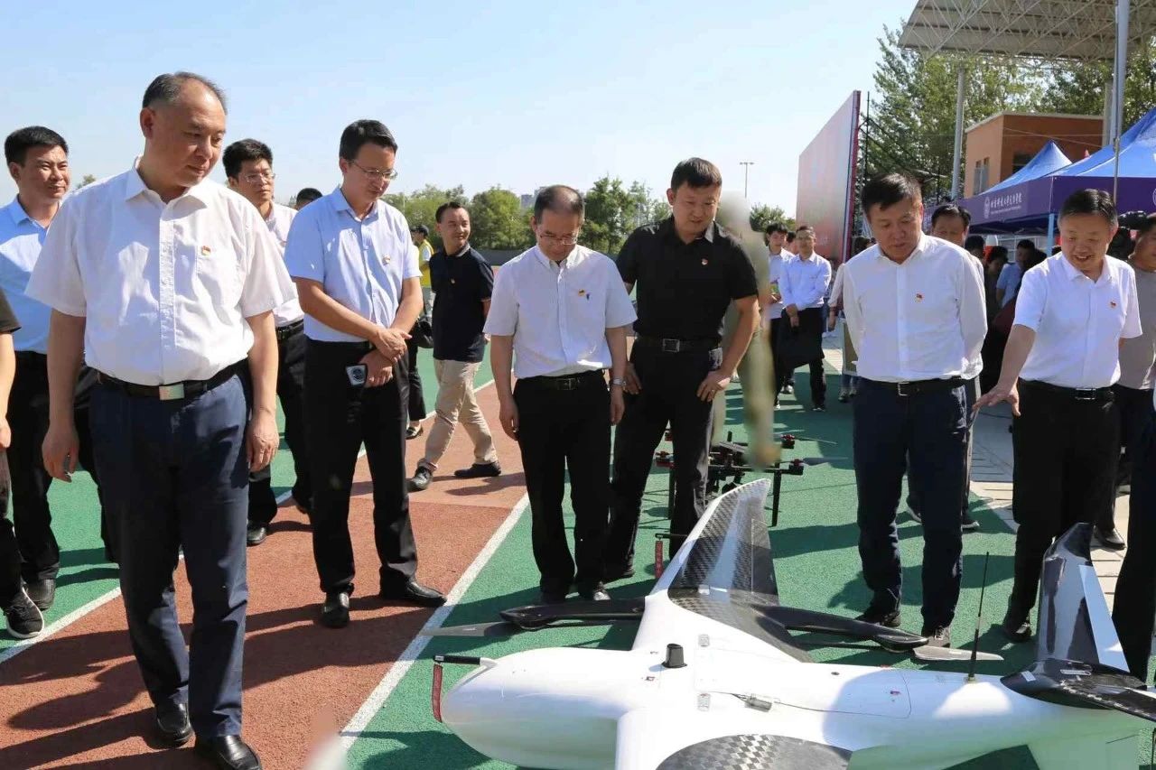 无人机飞行展演结束后,与会领导一行步入无人机展示区,详细了解各类无人机所搭载的设备情况,以及其有效负载、续航时间、运用场景等。