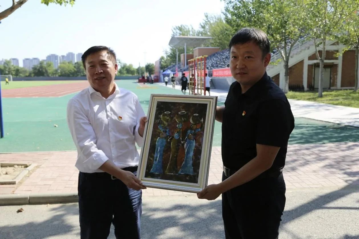 王赫明局长向学院赠送礼物,北京科技大学副校长王鲁宁代表学院接受赠礼。