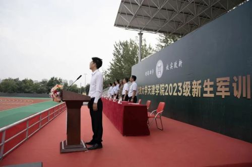 来自法律系的2023级新生代表,杨日新同学带领新生宣誓。