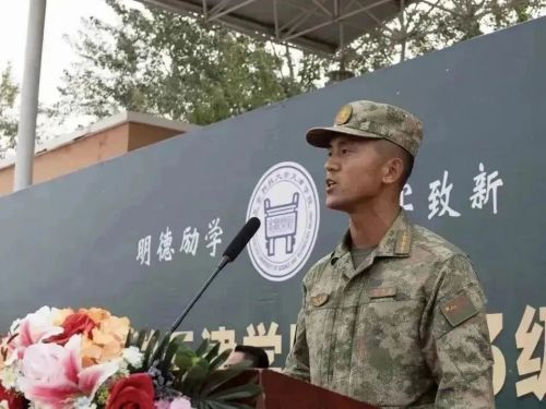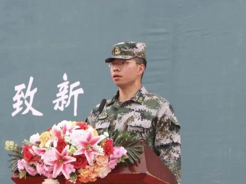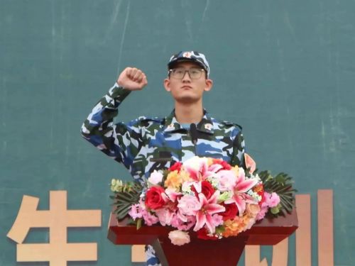 来自城市建设学院工程造价专业的张普星作为退役复学大学生教官代表上台进行表态发言,全体教官将履行教官职责,严格按纲施训;发扬优良作风,树立良好形象;巩固军训成果,提升国防意识。