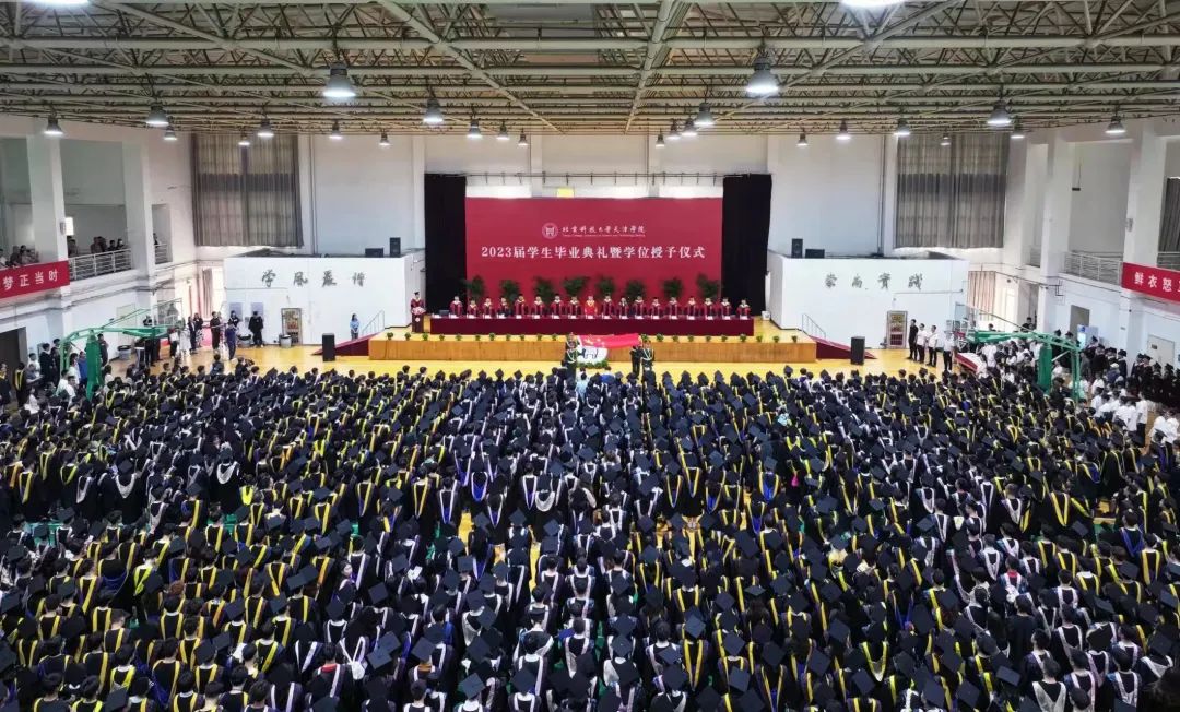 典礼在雄壮的国歌中开始。学院党委副书记栗时锋主持毕业典礼,1792名2023届毕业生和82名2022届毕业生参加学位授予仪式。