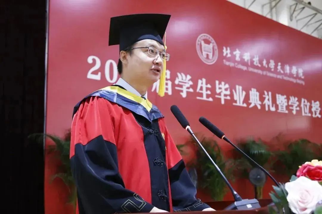 材料与环境学院刘天驰代表全体毕业生发言,他表达了对未来的憧憬、对过去四年青春的炙热回忆,向母校、父母和师长致以衷心的感谢与最真诚的祝福。