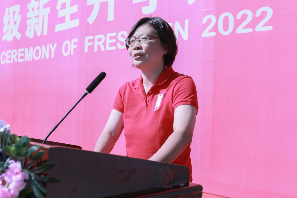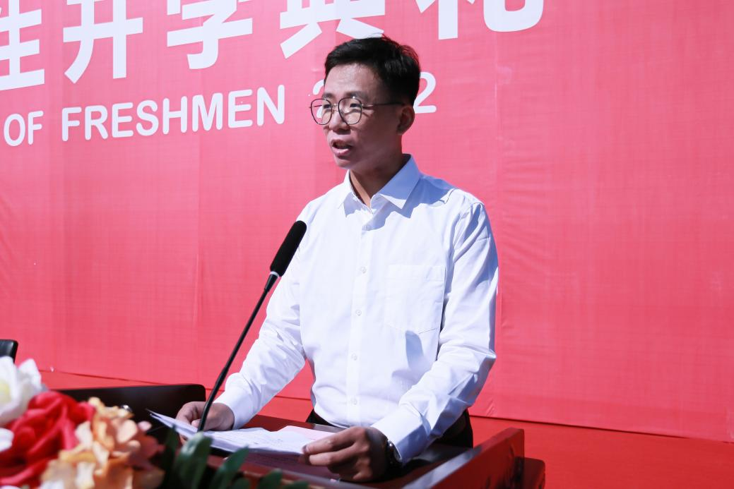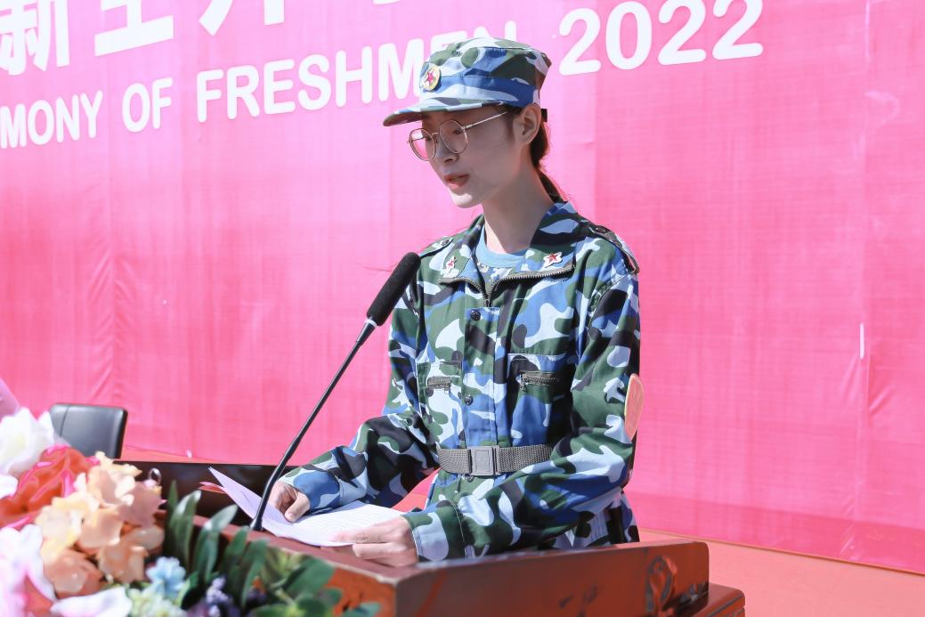 石沙沙同学代表2022级新生发言,她号召全体新同学们敢于无畏向前,勤于开拓进取,乐于奋斗奉献,要承担起时代赋予的责任,心怀请党放心、强国有我的铮铮誓言,秉承清澈的爱、只为中国的深情厚意,以新的语言、新的行动、新的风貌去开启一段新的旅程。
