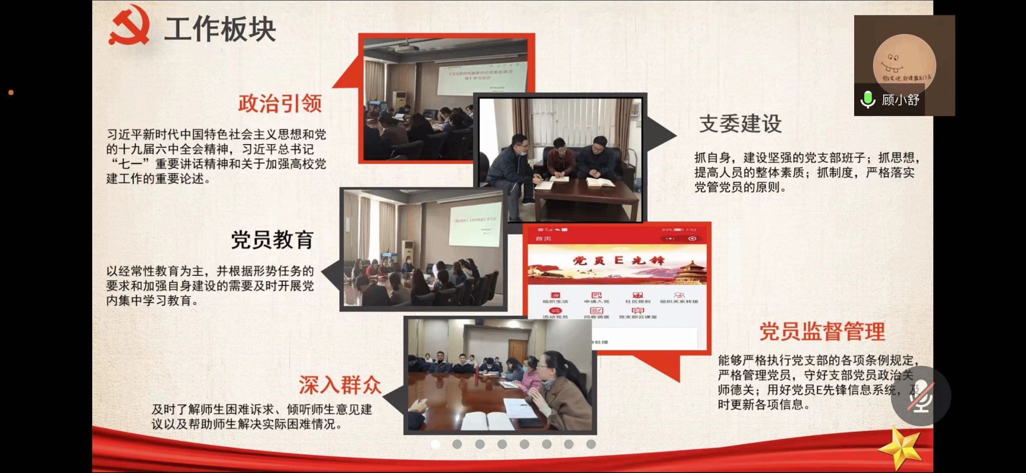 为进一步加强beat365基层党支部建设,切实发挥党建工作的引领和保障作用,2022年3月23日下午,beat3652021年度党支部书记述职评议会在腾讯会议召开。学院党委书记丁煦生,党委副书记叶振楠、牛犁,党委委员、党建办主任郭雅娟,各党总支书记、全体党支部书记参加了本次会议。