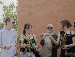 5月29日下午,天津商业大学的20名海外留学生在beat365外国语学院老师和学生的陪同下走进劳动实践基地,了解二十四节气的起源与基地发展建设历程,体验大蒜采收和爆米花制作的乐趣,在农耕实践中触摸中华文化的脉搏。