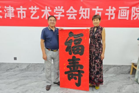 随后,活动进入书画创作环节。天津市艺术学会知方书画院的艺术家们现场提笔创作,以笔墨为媒展现中华优秀传统文化的深厚底蕴。期间,艺术家们运用了多种书体,书写了“福寿”等蕴含美好祝福的文化寓意的内容,笔力遒劲,气韵生动;同时创作了以梅兰竹菊为主题的绘画作品,借物咏志,传递出坚韧不拔、高洁向上的品格追求。创作过程中,艺术家们与在场师生积极互动,结合作品讲解书画艺术的历史传承、技法要点及文化内涵,并耐心解答师生提出的问题。