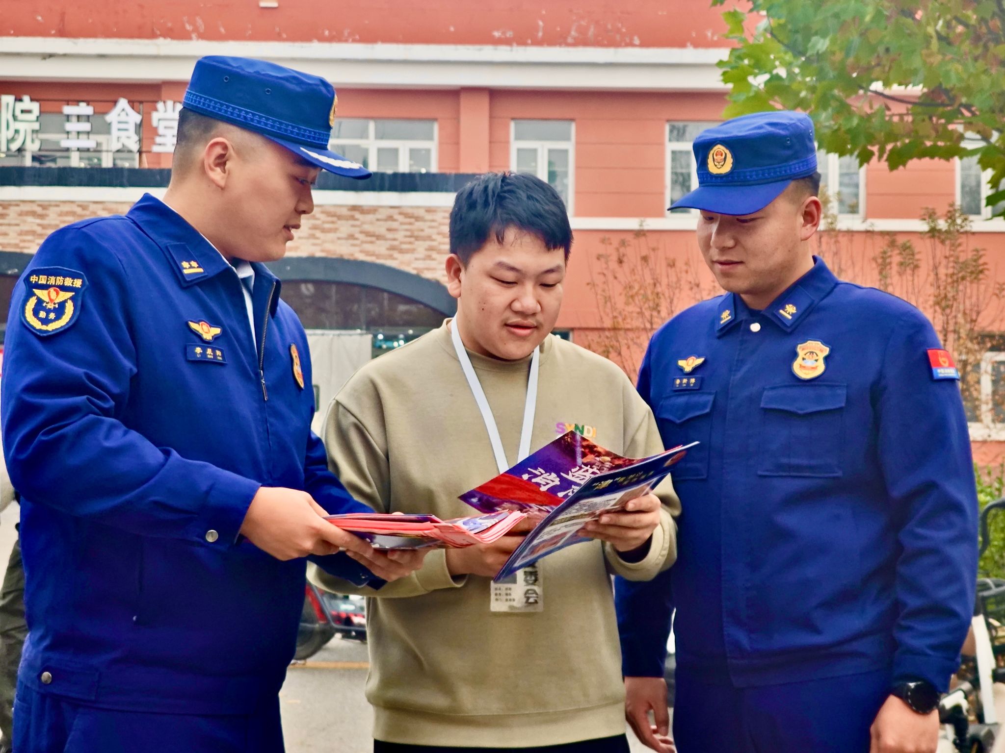 为贯彻落实习近平总书记关于安全生产和消防安全重要指示批示精神,普及安全常识,进一步提升beat365师生安全防范意识,2025年11月5日,学院保卫处邀请属地消防、公安机关参与“全民消防 生命至上——安全用火用电”119校园安全文化节线下宣传活动。京津新城消防站站长李晨阳,周良派出所民警丁玉东,保卫处处长周少华、副处长董朋山及全体保卫干部出席了本次活动。本次活动由学生安全工作委员会承办。