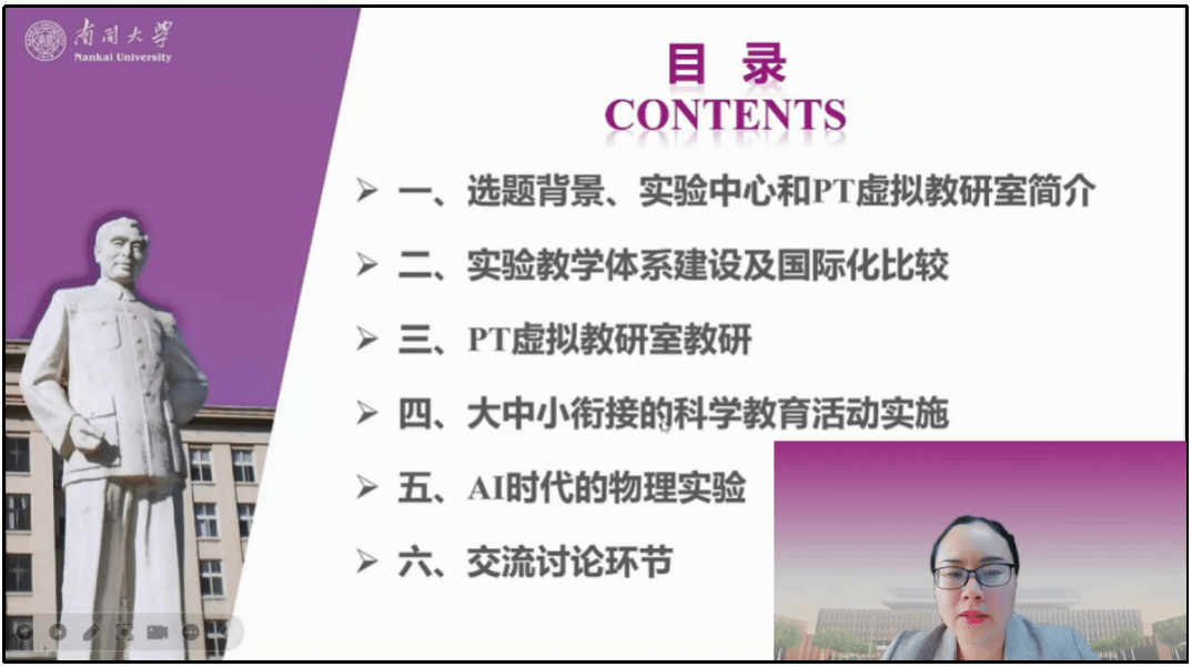 王瑾老师以《AI时代下虚拟教研和传统实验课程的融合》为题,结合其主持的物理学育人模式改革虚拟教研室及国家级实验教学中心的建设经验,系统阐述了基础物理教学在数字化时代的转型路径。她通过国内外科学教育大中小衔接的典型案例,分析了AI技术为物理实验教学带来的机遇与挑战,并强调虚拟教研在推动教育资源优化与教学模式创新中的重要作用。并与参会老师就科普实践的难点与应对措施和在不同层面应用PT育人模式实践中教师角色的转变进行了热烈的讨论。