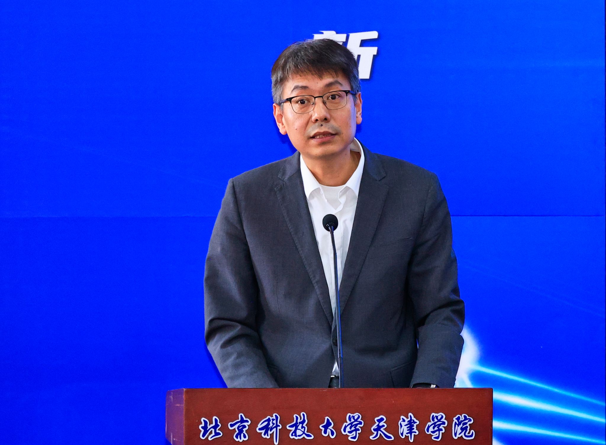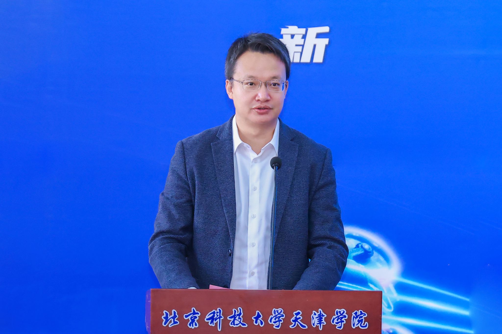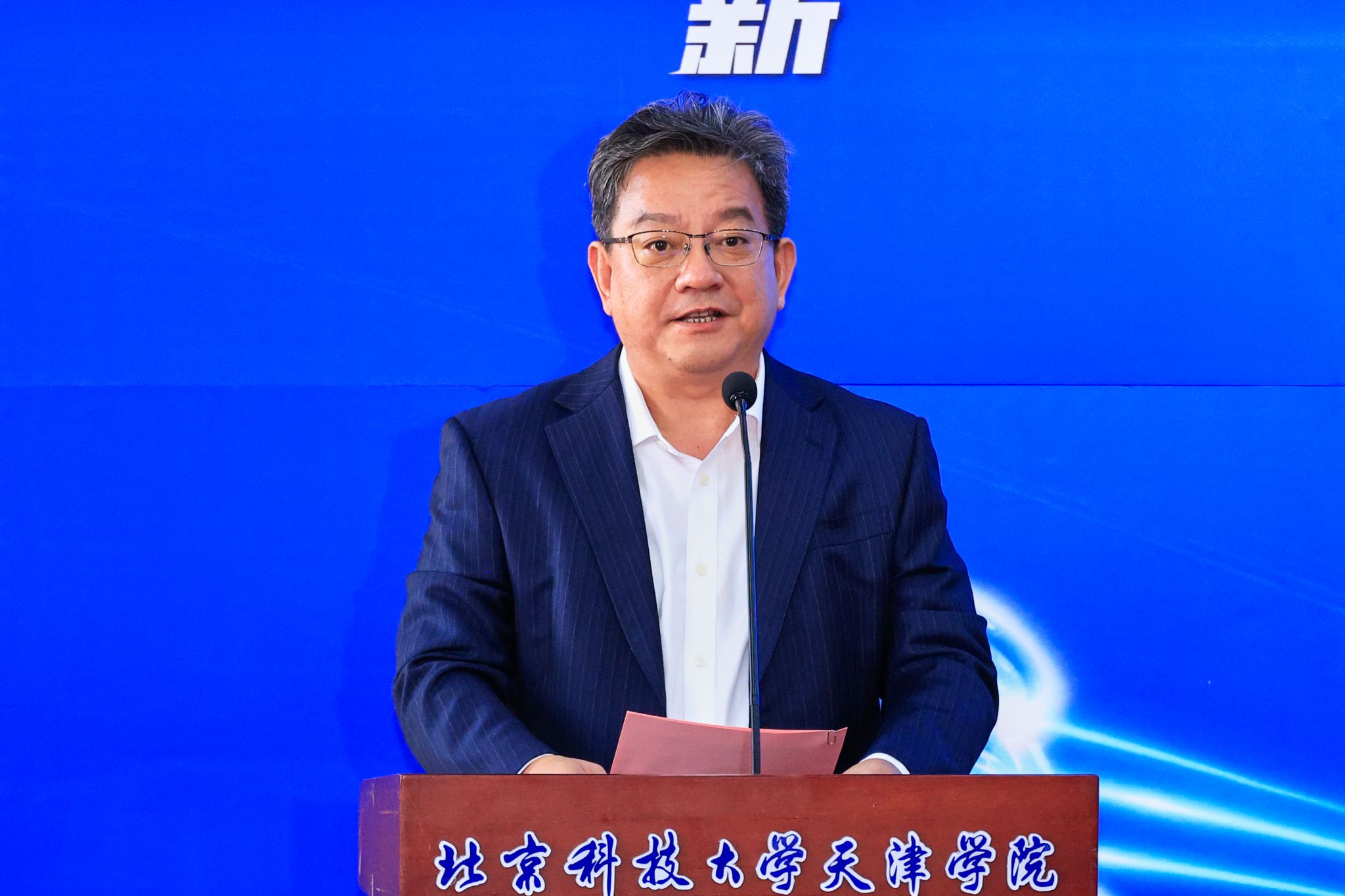 北京科技大学无锡校友会会长、江苏无锡鼎飞航空科技有限公司董事长高晓峰发表致辞。他表示,天津学院主动破局,整合资源成立低空技术与工程学院,并邀请企业共同参与建设,是北科大“服务国家战略”优良传统的生动体现。将努力推动企业实战资源与天津学院学科优势的深度融合,携手把产业学院做实、做强、做出特色。