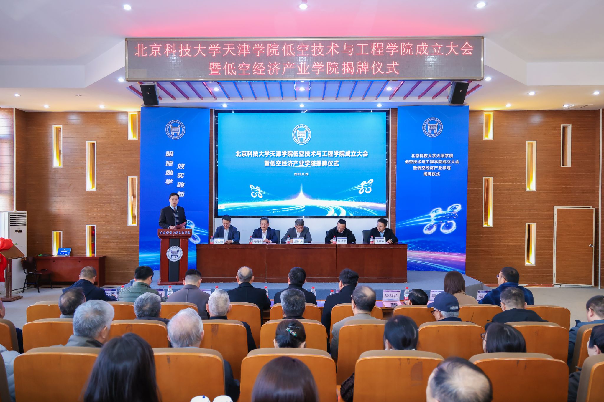 北京科技大学党委常委、副校长焦树强发表致辞。他表示,低空技术与工程学院的成立是学院党委的一次重大决策部署,在发展过程中,要做到坚持高起点谋划,走新路,创新篇,构建特色鲜明、优势突出的学科体系,推进学科交叉融合;坚持有组织育人,强动能,聚合力,探索构建“课程-实训-研发”一体化培养体系,加快形成多学科交叉、产学研用一体的创新团队;坚持全方位引领,把方向、保发展,学院党委要牢记“为党育人、为国育才”根本使命,把学院建设成为坚持党的全面领导的坚强阵地,抓好领导班子自身建设,做好安全稳定工作。