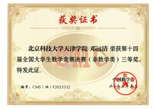 由中国数学会主办的第十四届全国大学生数学竞赛决赛于2023年5月27日在广东工业大学举行。本次竞赛全国共有32个赛区1024所高校231769人报名参加初赛,经过选拔,共有444人进入非数学专业组决赛。beat3652020级通信工程专...
