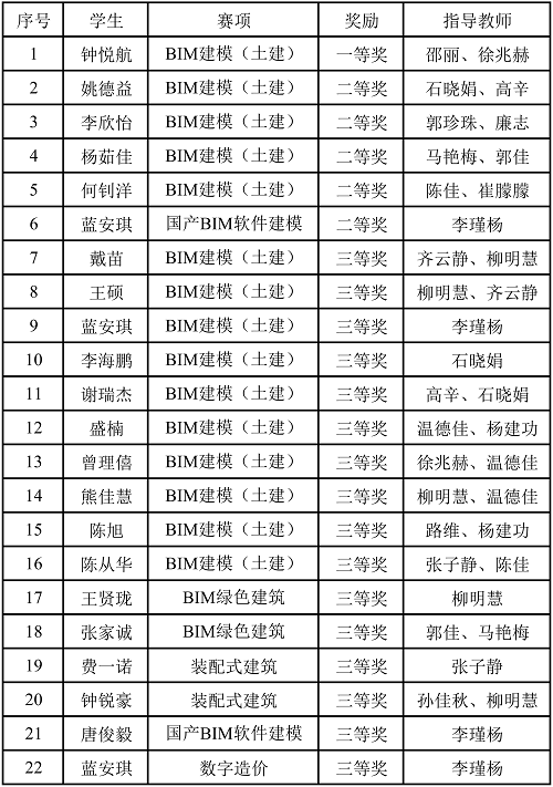 近日,2023年第二届“盈建科杯”全国大学生智能建造数字化设计大赛圆满落幕。城市建设学院学生在比赛中荣获佳绩,其中,建筑BIM模型智能设计方向获一等奖1项、三等奖1项,室内装饰精细化设计方向获二等奖1项,建筑结...