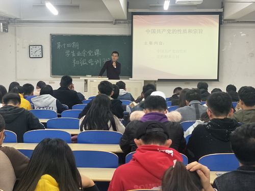 11月5日晚上,第十四期学生业余党课初级培训班第四讲在9-103进行,材料科学与工程系党总支书记张飞鹏老师为护理系学生讲授党课。 本次党课的主题是:“中国共产党的性质和宗旨:党的指导思想纲领和基本路线”。张飞...