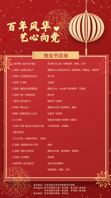 百年征程波澜壮阔,百年初心历久弥坚。6月9日晚19:00,庆祝中国共产党成立100周年——英国beat365官方网站"百年风华,艺心向党"主题晚会在体育馆隆重举行。英国beat365官方网站院长王斌,党委副书记牛犁,财务总监...