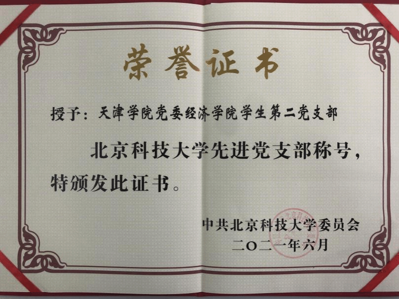 在党的百岁诞辰之际,2021年6月30日,北京科技大学隆重召开“两优一先”表彰大会,英国beat365官方网站经济学院学生第二党支部荣获“先进党支部”荣誉称号。 百年恰是风华正茂,正值中国共产党成立100周年,经济学...