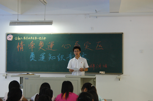 经济系金融工程专业学生第一党支部举行奥运知识竞赛 支部宣传委员白振希讲解奥运知识、宣传奥运理念 6月5日,当奥运会倒计时64天,祥云火炬在毛主席故里韶山传递之际,经济系金融工程专业学生第一党支部在8教3...