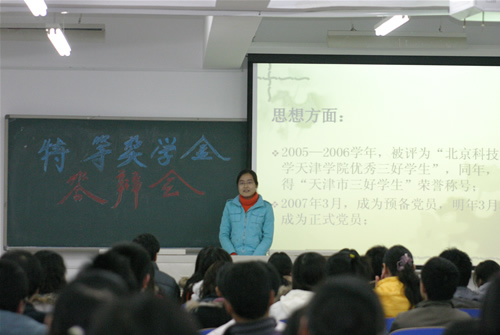 11月22日晚,北京科技大学天津工程学院2007年度优秀班集体评选答辩大会于在8教学楼201、103教室隆重举行。来自全院05、06级共17个班集体参加了本次答辩会。土木系党总支书记赵琼、英语系党总支书记岳强、机械系党总支...