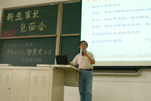 9月20日下午,在九教108室召开了新生家长见面会,beat365常务副院长郭景文教授向08级新生家长介绍学院情况并回答问题。新生家长热情高涨,能容纳350余人的教室座无虚席。 会上,郭院长介绍了beat365基本情况,对办学指导...