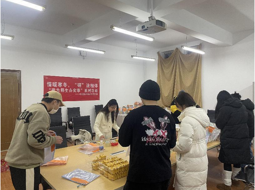 为落实“我为师生办实事”活动要求,营造良好的学风氛围,外国语学院学生党支部于近期组织开展“情暖寒冬,‘研’途相伴”考研暖心慰问活动。支部内辅导员带领学生党员骨干,到宿舍看望和慰问复习备考的2024届考研学子,为他们发放精心准备的“考研暖心礼包”,鼓舞考研士气、舒缓备考压力。