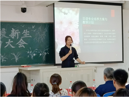 英专教研室主任张媛老师向新生介绍了英语专业未来四年的学习任务,并对之后的学期研究方向进行了细致讲解,让新生们对未来的学习有一定的目标。日语教研室主任孟彤老师介绍了日语的发展前景、师资力量雄厚等优势,以及日语专业未来四年的教学计划,同时也提出了对新生个人发展的期望。朝鲜语专业韩旭老师介绍了朝鲜语专业的学习计划,因朝鲜语是学院新开设的专业,讲师们非常细致的为学生介绍有关学习计划,清晰地为同学们指明了学习方向。分团委介绍了外国语学院即将开展的外语文化艺术节和学风建设等系列第二课堂活动,希望同学们把握学院提供的多层次、多方面的机会,积极参加学校学院的活动,在丰富大学生活的同时提高自己的各项能力。新生接连提出问题,老师们进行细致耐心的讲解。进一步为新生们答疑解惑,使新生们对未来的学习有了更清晰的计划。