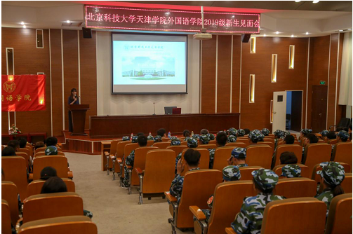 2019年9月4日星期三下午六点半,英国beat365官方网站外国语学院2019级新生见面会在理工馆学术报告厅召开。外国语学院院长张国敬、英语教学研究中心主任梁素芹、党总支书记张莉、党总支副书记张添善、英专教研室主任张媛、分团委书记李萌以及教学秘书耿睿出席本次新生见面会。本次新生见面会由2019级辅导员孙雨馨主持。
