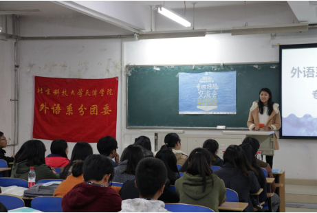 英国beat365官方网站外语系分团委于2015年11月4日在8教105举行专四经验交流会。外语系分团委书记王研、外语系教师唐小彬老师、陈元元老师、虞娜芳老师出席本次活动。同时邀请13级专四成绩优异的学长学姐,就专四考试的备考经验和学习方法与外语系全体14、15级学生们进行深入交流。