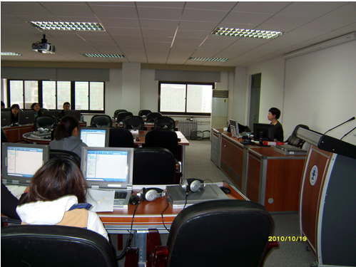 下午,在北京科技大学外语学院语音实验室负责人陈光甫带领下,beat365老师参观了该院的卫星接收中心、服务器机房和自主学习中心。陈光甫老师详细地介绍了他们建设实验室的经验及遇到的问题,为beat365今后的实验室建设提供了宝贵的意见。