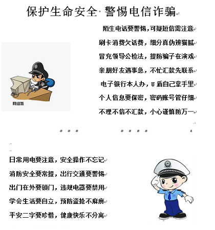 同时,外国语学院学生党支部和分团委、学生会共同编印的《保护生命安全 警惕电信诈骗》宣传资料集中在学生宿舍讲解、粘贴。意在让同学们了解电信诈骗防范知识,提高防骗意识。