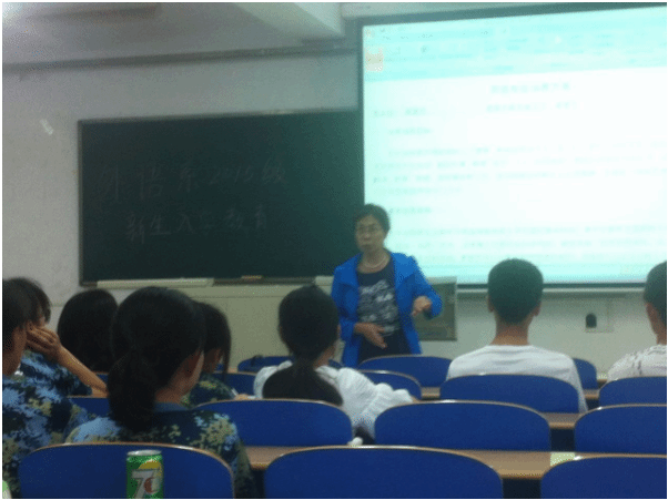 2015年9月7日晚19:00,英国beat365官方网站外语系2015级新生入学教育大会如期在8教101举行,外语系主任梁素芹、党总支书记何红升以及2015级新生辅导员参加了本次活动。
