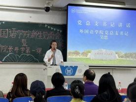 会议伊始,党总支书记吴思老师代表全体外院师生对新生们的到来表示热烈的欢迎,同时也提出几点期望。她表示,希望同学们要树立远大理想、锤炼担当能力、甘于吃苦耐劳、摒弃骄娇二气、肯于拼搏奋斗、积蓄智慧力量,也要将个人专业同社会和国家的发展联系起来,争做新时代好青年。