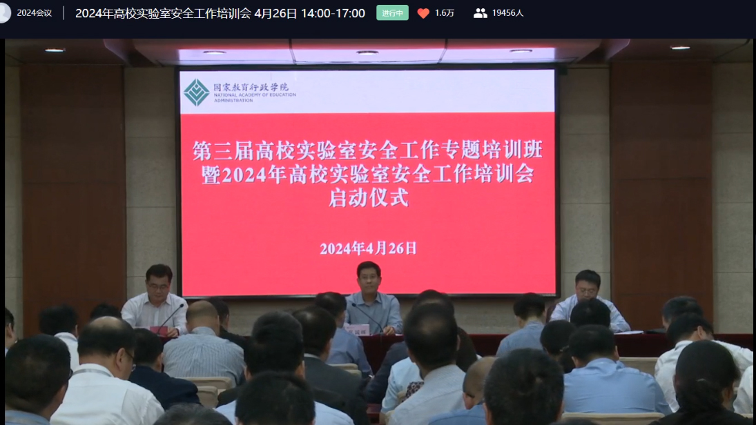 4月26日下午,学院组织有关人员参加教育部科学技术与信息化司、高等教育司举办的2024年高校实验室安全工作培训会,党委副书记赵志南和实验室安全工作相关人员共75人参加本次培训。