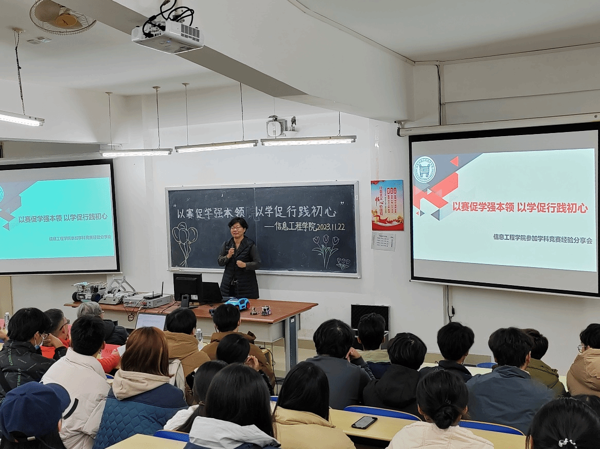 为建设优良学风,推进以赛促学,信息工程学院于11月22日在3教310阶梯教室举办一场主题为“以赛促学强本领 以学促行践初心”的学科竞赛经验交流分享会。