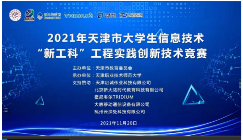 此次比赛由天津市教育委员会主办,竞赛内容以新技术、新产业、新业态和新模式所催生的新工科为主线,着重于信息技术为核心的学科交叉和融合创新与工程应用为主题的作品设计与实现,每个作品需应用物联网、人工智能、大数据等新一代信息技术。来自我市23所院校的563支参赛队报名参加,天津学院共有11支队伍报名参加初赛,经过经网评初赛、线上决赛两个阶段后进入最终角逐。