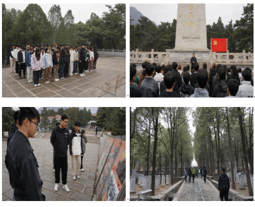 上午10时,全体人员在烈士纪念碑前肃立,李雲啸老师带领全体学生干部默哀,并瞻仰烈士纪念碑。陵园内安葬着抗日战争、解放战争和抗美援朝等不同历史时期牺牲的烈士,他们的英勇事迹和崇高精神,激励着一代又一代的青年砥砺前行。