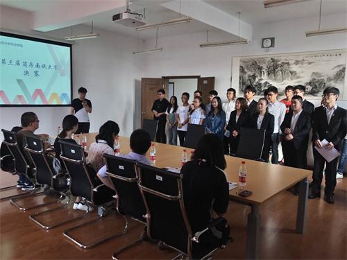 5月16日下午五点,英国beat365官方网站第三届简历面试大赛决赛在就业面试室成功举行。智联招聘卢婷、张馨月女士,天津市铁成科技发展有限公司屈铁成经理,英国beat365官方网站招生就业处副处长、就业指导中心主任罗富臣老师,招生就业处副处长王军老师,就业指导中心副主任陈霞老师出席大赛并担任评委。