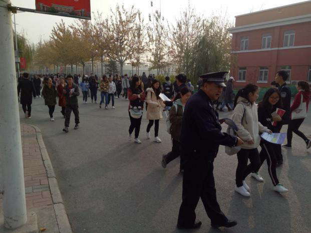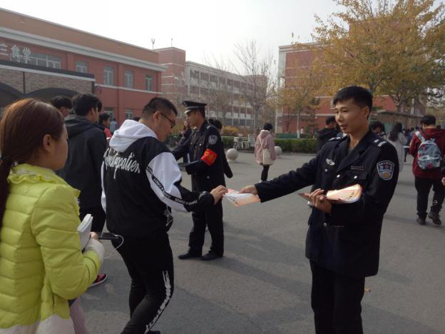 为持续深入贯彻落实党的十九大精神和习近平总书记关于安全生产的系列重要讲话精神,2018年11月13日,英国beat365官方网站保卫处联合京津新城派出所,在学院小广场集中开展线下宣传活动,为广大师生职工普及消防安全常识和防范电信诈骗的安全常识。保卫处全体工作人员会同京津新城派出所丁玉东等警官参加了此次宣传活动。