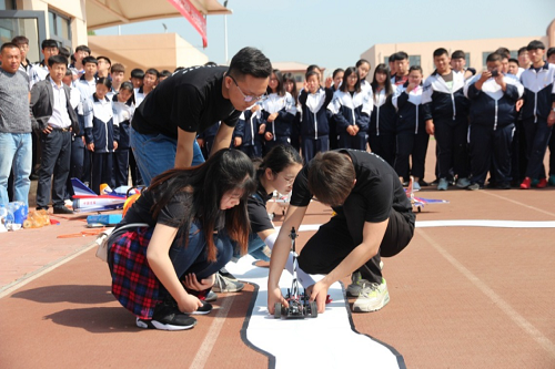 为落实新时代天津高校思想政治工作改革攻坚动员部署会会议精神,深入学习宣传贯彻习近平新时代中国特色社会主义思想,推进社会主义核心价值观的实践养成,加强红色文化教育,引导广大学生在实践体验中深入学习领悟习近平新时代中国特色社会主义思想的伟大历史成就,2018年5月4日上午,beat365信息工程学院组织智能车团队与无人机团队队员赴天津市宝坻区职业教育与成人教育中心开展智能车与无人机科技展示。