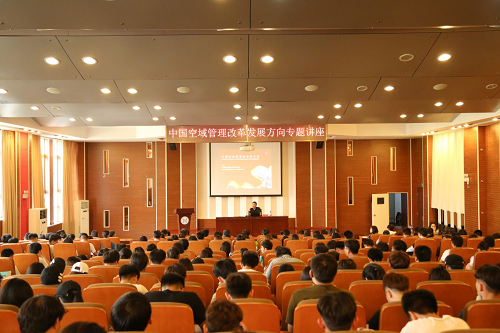 殷院长就我国空域管理现状、国家空域管理的改革和发展以及现行空域管理所面临的挑战与机遇进行了重点讲述。殷院长指出在民航飞行快速增长与空域资源不足,空域使用效益不高,空域未分类划设制约,通用航空发展以及管理法规标准不完善和多头管理的问题下,我们所迎更多的是机遇与挑战。在现场互动环节,与会师生踊跃的向殷华院长提问,院长对此进行了耐心解答。