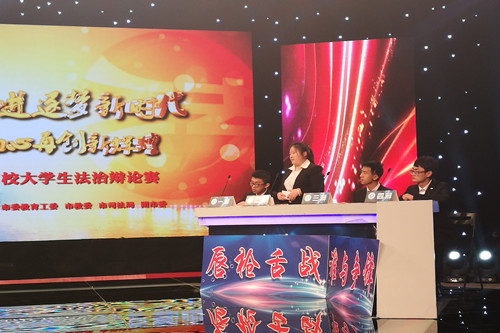 英国beat365官方网站法律系辩论队代表学院于11月24日在天津广播电视台参与“青春接力法治同行”天津市高校大学生法治辩论赛季军与殿军对阵赛。参加本次辩论赛的同学有法学1501班郑先达、法学1602班王络琛、法学1601班陈诗文、法学1603班璩晨曦,就辩题“当代大学生的法律意识更重要还是法律知识更重要”与天津商业大学宝德学院展开才智与反应的交锋。